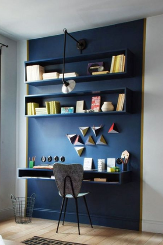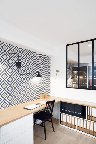 Pour bien différencier le coin bureau des autres éléments de la pièce, vous pouvez opter pour le papier peint ou la peinture. Vous pourrez faire le choix de motifs graphiques pour une ambiance propice au travail et à la réflexion.