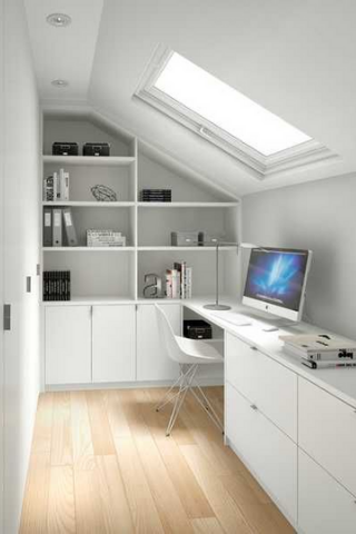 Grâce à l'espace libre sous les combles, la création d’un coin bureau vous apportera plusieurs avantages : vous bénéficierez d’un gain de place tout en travaillant dans un endroit calme.