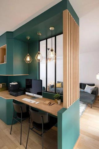 Osez donner du peps à votre bureau grâce à des couleurs dans les tons vert d’eau ou bleu canard. Si vous souhaitez disposer d’un espace de travail zen, dirigez vous vers des tons sobres comme le beige, le blanc ou le gris.