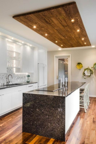 Si vous avez une cuisine ouverte sur votre séjour, vous pouvez créer celui-ci pour délimiter l’espace. Le faux plafond suspendu est l’élément parfait pour mettre en lumière un endroit précis: îlot de cuisine, bar…Pensez à ajouter des spots et des leds, pour accentuer la démarcation.