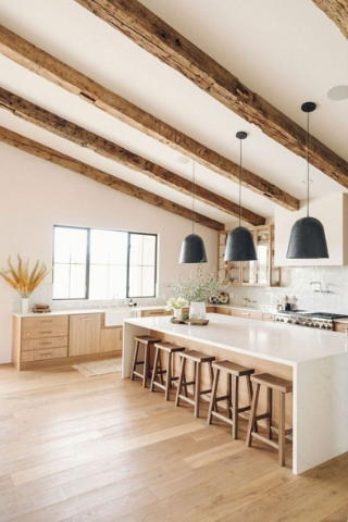 Vérifiez la composition des peintures, des revêtements de sol et du papier-peint et optez pour des produits sans solvant et le plus écologique possible. Le charme brut des poutres apparentes réchauffe votre déco intérieure.