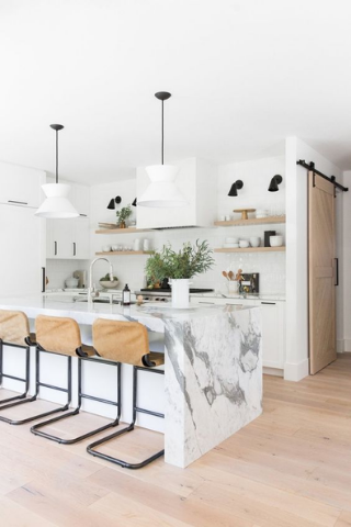 Très tendance, l’îlot central en marbre offre plusieurs avantages. Véritable élément de décoration, il vous permet également de ranger de nombreux ustensiles.