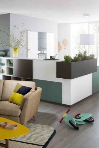 La cuisine avec un bac pour les plantes aromatiques arrive sur le devant de la scène pour définir et structurer l’espace. Ainsi, un espace extérieur comme un balcon ou un jardin n’est plus indispensable pour cultiver vos aromates.