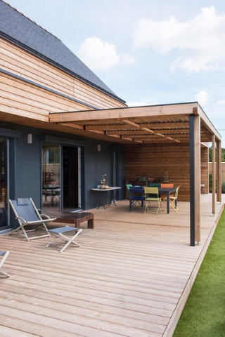 La pergola peut créer une véritable pièce supplémentaire lorsqu’elle est adossée à la maison.