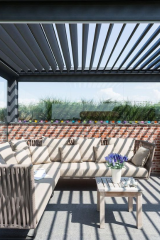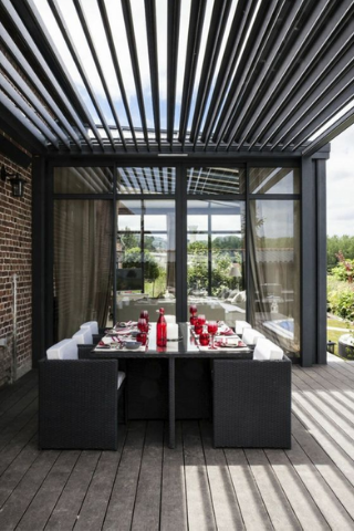 La pergola bioclimatique peut être en aluminium, en bois ou en acier. Elle se compose d’un toit avec des lattes orientables qui peuvent être contrôlées. Lorsque les lattes sont fermées, la pergola est totalement étanche. Elle offre donc un abri sur votre terrasse ou dans votre jardin utilisable tout au long de l’année.
