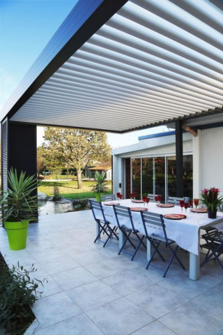 La pergola bioclimatique peut être en aluminium, en bois ou en acier. Elle se compose d’un toit avec des lattes orientables qui peuvent être contrôlées. Ainsi, vous bénéficiez d'un espace protégé tout au long de l'année. C’est une réelle valeur ajoutée pour votre maison.