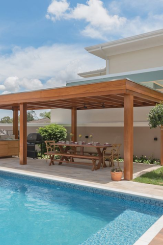 Très tendance, la pergola apporte un côté intimiste à votre piscine. Ainsi, vous disposez d’un endroit pour vous relaxer après la baignade. Souvent en bois, elle sublime les abords de votre point d’eau pour le rendre plus moderne et tendance.