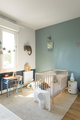 Pour une chambre colorée en douceur, optez pour le rose poudré, le vert sauge et le blanc.