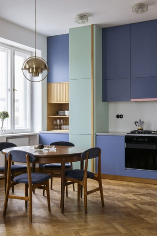 Vous pouvez équiper votre cuisine avec trois blocs de couleurs pour vos rangements. C’est idéal pour dynamiser un intérieur discret.