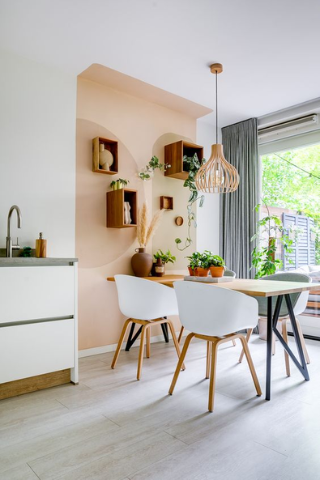 Pour une bonne répartition des couleurs et afin d’éviter une faute de goût, choisissez la règle de 70% pour la première, 20% la deuxième et 10% la troisième. Par exemple, le blanc sera la teinte dominante, suivi par le rose poudré puis le gris.