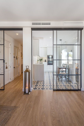 Pour optimiser l’agencement, choisissez des séparations sans cloisonner l’espace. Remplacez les portes battantes par des coulissantes en verre, vous gagnerez de la place tout en laissant passer la lumière. Ainsi, vous obtiendrez une meilleure circulation et une belle luminosité au sein de l’ensemble de votre habitation.