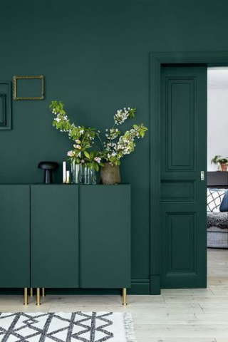 Selon votre espace, vous pourrez peindre un mur dans une couleur plus sombre : gris anthracite, vert sapin ou même noir. C’est un défi qui vous permettra de mettre en lumière votre mobilier et de sublimer l’espace.
