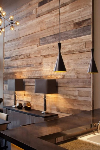 Il existe plusieurs façons d’habiller un mur de bois, avec du lambris, du bois recyclé, du parement de bois… Comme la brique de parement, il apporte chaleur et originalité à votre intérieur. Le bois est idéal pour créer une ambiance cosy et chaleureuse.
