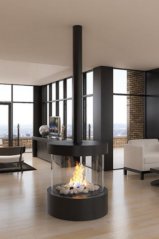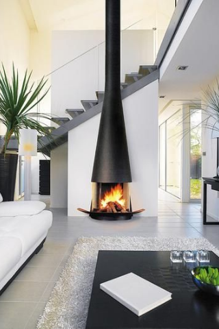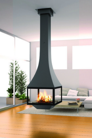 Le poêle suspendu, idéalement situé au centre de la pièce, contribuera à une décoration design et tendance.