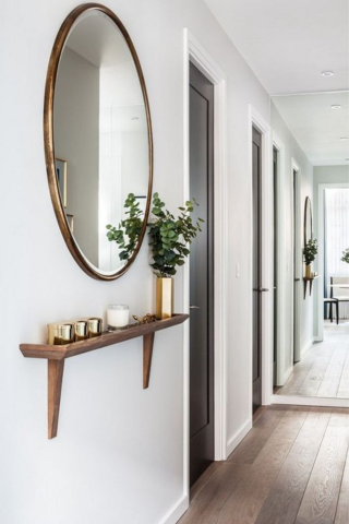 Dans un couloir étroit, vous pouvez choisir une petite console accrochée au mur. Si vous appréciez l’authenticité, le bois brut sera votre meilleur allié.