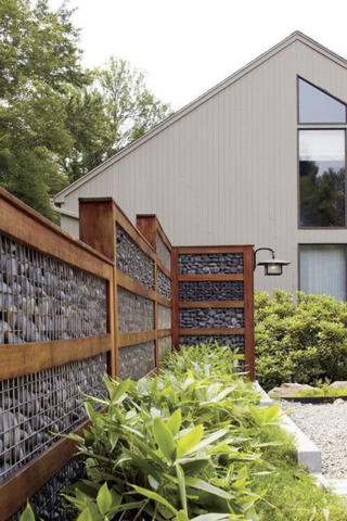Vous pouvez créer une clôture alliant le gabion et le bois afin de personnaliser davantage votre aménagement extérieur tout en alliant harmonie et praticité.