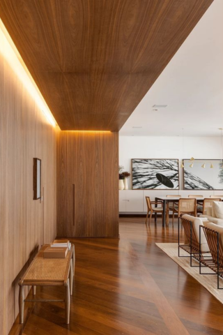 Une autre astuce consiste à choisir le même matériau du sol au plafond à un endroit précis de la pièce pour dissimuler votre porte. Pensez à sélectionner celui-ci en fonction de votre sol pour un intérieur esthétique et homogène.