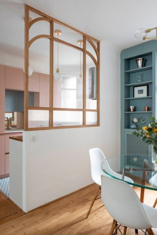 La verrière transforme vos pièces de vie ! Elle est particulièrement utilisée pour définir le coin cuisine et la salle à manger. Choisissez une teinte pour chaque espace ainsi, vous différenciez davantage les deux surfaces.