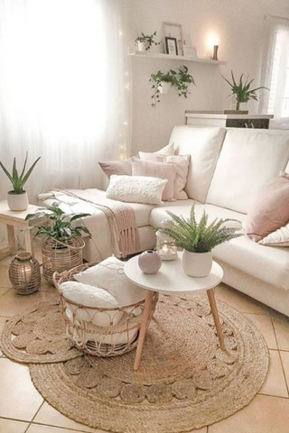 Le blanc, le beige et le gris venant du style scandinave sont les bienvenus dans votre intérieur. Pour rehausser les teintes claires, vous pouvez ajouter des accessoires de couleurs plus terreuses comme le terracotta. C’est l’idéal pour réchauffer l’atmosphère de votre pièce!