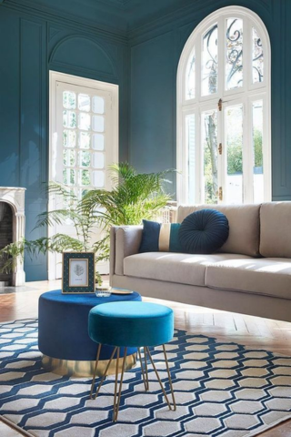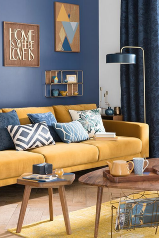 Si vous aimez les contrastes, choisissez les couleurs à l’opposé dans le cercle, elles sont complémentaires. Le bleu et le jaune sont parfaits pour créer une décoration pleine de caractère.