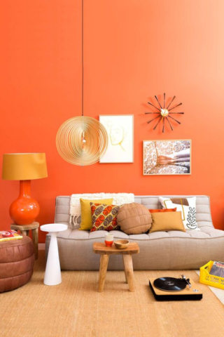 Les couleurs chaudes dégagent une impression de chaleur et dynamisent votre intérieur. Par exemple, vous pouvez peindre un pan de mur de votre salon en orange pour une déco personnalisée et pleine de vie.