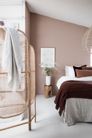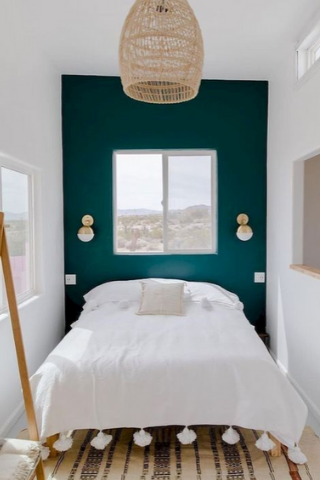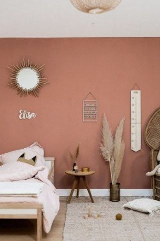 On retrouve souvent le cas dans un couloir long et étroit ou une chambre en longueur. Afin de casser cette impression de rétrécissement, vous pouvez peindre le mur du fond ou celui le plus court dans une couleur foncée et les autres dans une teinte plus claire.