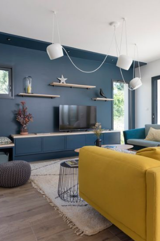 Dans un salon, vous pouvez aussi peindre sur deux murs de façon à créer un L. Cela favorisera l’effet cocon chaleureux.