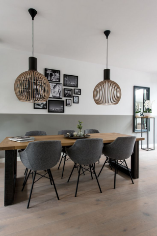 Vous pouvez opter pour des murs foncés, un plafond dans les tons pastel et un sol clair. Cela donnera de suite une impression de hauteur.