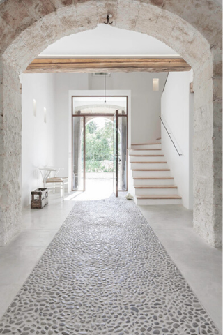 Très belle idée de déco pour le revêtement de sol de l'entrée, le tapis de galet est un style surprenant qui permet de faciliter la transition entre l’extérieure et l’intérieure. Plutôt réservé aux entrées de bonne longueur, il est destiné à tracer la voie d’accès à la décoration intérieure. Élégant et très pratique, le revêtement en galet est une bonne idée pour agrémenter la décoration de votre entrée.