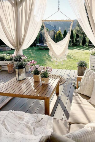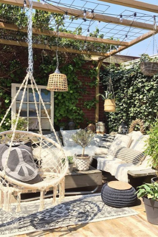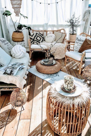 Cette année, la tendance sera au style bohème qui s'adaptera parfaitement à l’extérieur, que ce soit pour votre terrasse ou votre balcon. Les matières naturelles seront donc indispensables : tapis en jonc de mer, panier et mobilier en rotin, décorations suspendues en macramé… À cela, n’hésitez pas à apporter des touches de couleurs douces (vert d’eau ou rose pâle) ou des couleurs vives (bleu nuit, terracotta ou vert sapin).