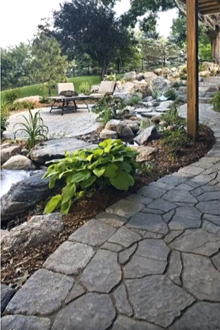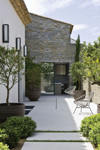 Pour une terrasse chic et rustique à la fois, la pierre naturelle est le revêtement parfait. Elle s'adaptera selon vos envies pour créer une atmosphère conviviale et authentique.