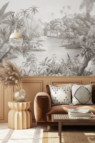 Pour offrir davantage de profondeur et personnaliser votre salon, le papier peint panoramique est votre principal atout.