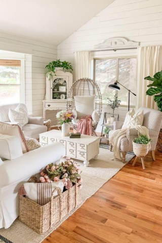 Elle associe à la fois les éléments rustiques et raffinés. Il s’agit de revisiter l’intérieur style campagne pour créer une déco romantique et cosy.