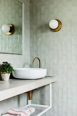 En 2021, les murs et sols gagneront en textures. On pourra voir les salles de bain s’embellir avec du zellige, des carreaux texturés, des tommettes ou du carrelage nid d’abeilles.