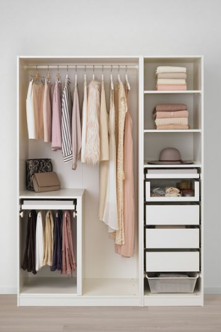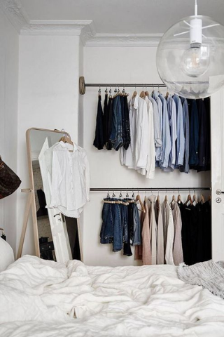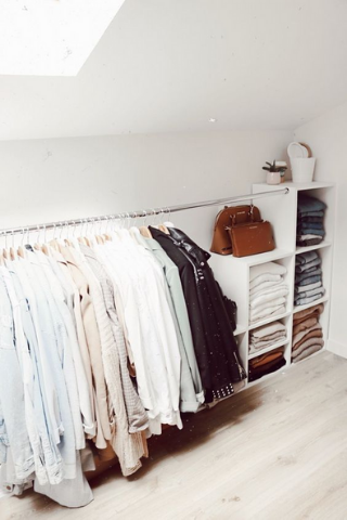 Afin de créer des rangements organisés et fonctionnels, il est nécessaire de créer 3 zones : la penderie, des étagères pour les vêtements pliés et les tiroirs pour les accessoires ou la lingerie.