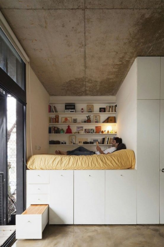 Le lit sur estrade est fonctionnel, mais aussi très esthétique. Si vous manquez d’espace, mais disposez d’une hauteur sous plafond intéressante, il sera parfaitement adapté.