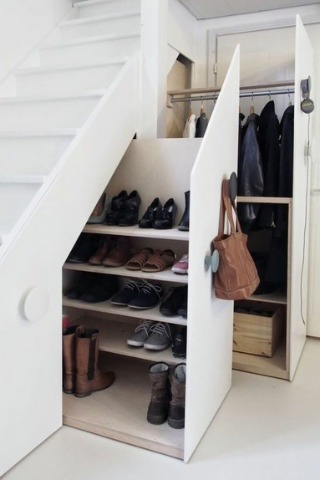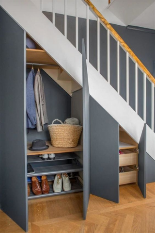 Pour optimiser au maximum l’espace, rien de mieux que de créer des rangements sous l’escalier.