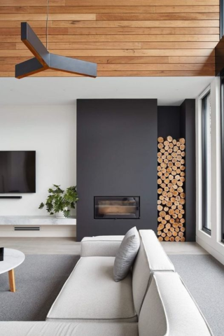 Souvent la création d’un poêle ou d’une cheminée au cœur de votre séjour engendre un angle perdu. Servez-vous de celui-ci pour stocker le bois ou ranger les accessoires nécessaires à son entretien.