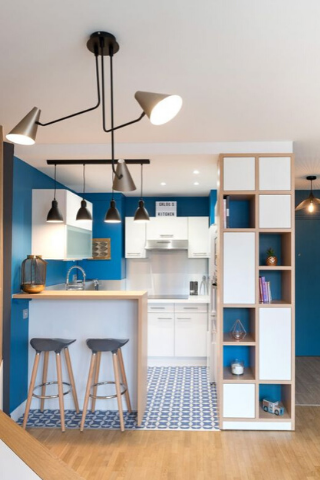 La cuisine est une pièce qui exige un aménagement bien précis. L'astuce la plus utilisée est la délimitation de l'espace.