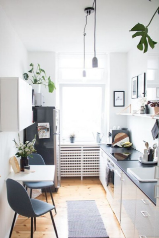 Privilégier le blanc dans votre décoration intérieure est donc une très bonne astuce à utiliser pour aménager une petite cuisine.
