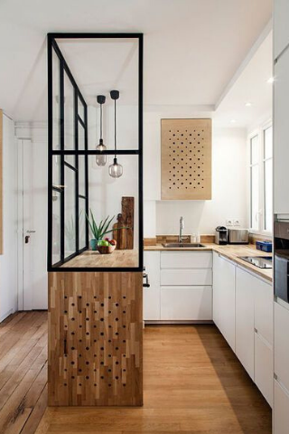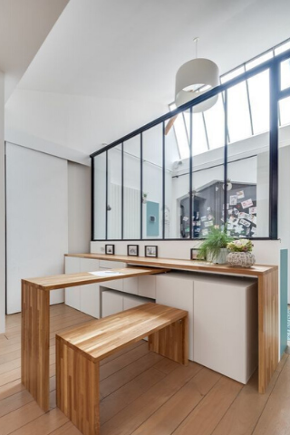 Lorsque vous avez une petite cuisine, il est important de la rendre fonctionnelle. Une verrière est une très bonne astuce pour l’aménagement. En effet, elle permet d’être ouverte sur une autre pièce et ainsi donner l'impression que l'espace est plus vaste.