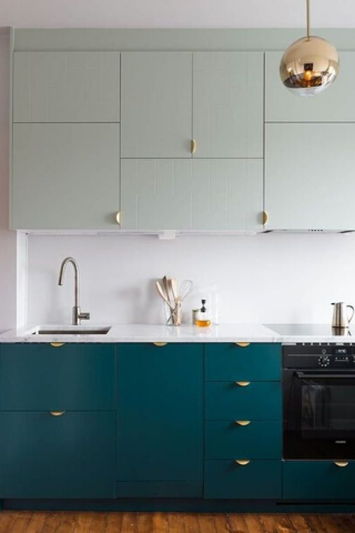 Les couleurs dominantes comme le bleu canard ou le vert d'eau sont très utilisée. Elles permettent de révéler le côté esthétique de la pièce en maximisant cette espace de vie.