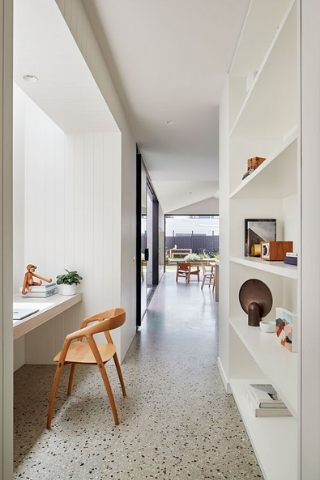 Si votre couloir est assez grand et est disposé de façon à desservir plusieurs pièces de la maison, vous pourrez envisager d’en faire un véritable espace de vie.
