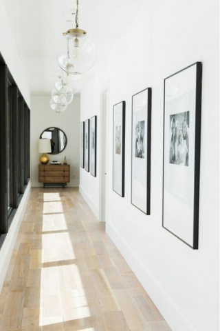 Pour parfaire la décoration de votre couloir, vous pouvez habiller les murs avec des tableaux afin de créer une véritable galerie d’art. N’hésitez pas à afficher vos souvenirs ou vos photos de famille dans de jolis cadres.