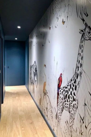Vous pouvez aussi créer une allée intimiste en proposant un mur décoré de papier peint à grands motifs fleuris ou panoramique. Grande tendance 2021, c’est un atout esthétique pour votre couloir.