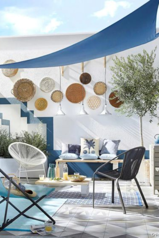 Les couleurs claires s’adaptent à tous les styles et vous permettent d’agrandir visuellement l’espace. L’idéal est d'associer une couleur claire avec une nuance plus foncée par petite touche. Pour vous protéger davantage du soleil, pensez à ajouter un voile d’ombrage.