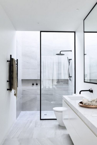 Le rideau de douche est démodé et s’use plus rapidement. Pour davantage de modernité, choisissez une paroi en verre, celle-ci sera plus discrète et contribuera à illuminer votre salle d’eau.
