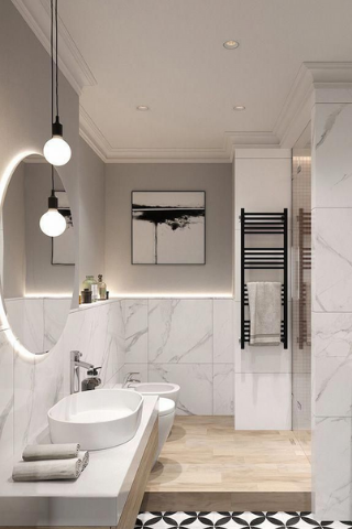 Pour un sol plus design, le carrelage graphique est parfaitement adapté: pensez à l’association du noir et blanc, pour une touche contemporaine.