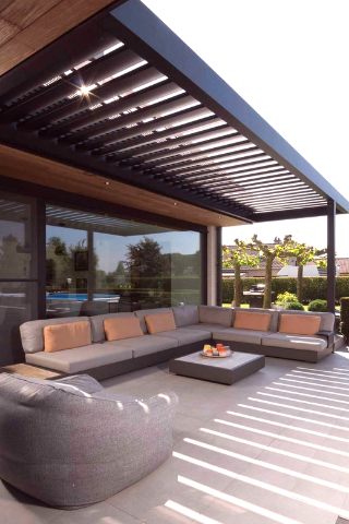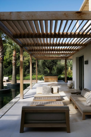 Vous pourrez opter pour des stores extérieurs comme ici entre votre terrasse et vos fenêtres.