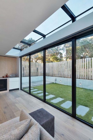 Cette extension fixée sur la façade de votre maison ajoute de la modernité à votre espace extérieur tout en vous protégeant de la chaleur.
